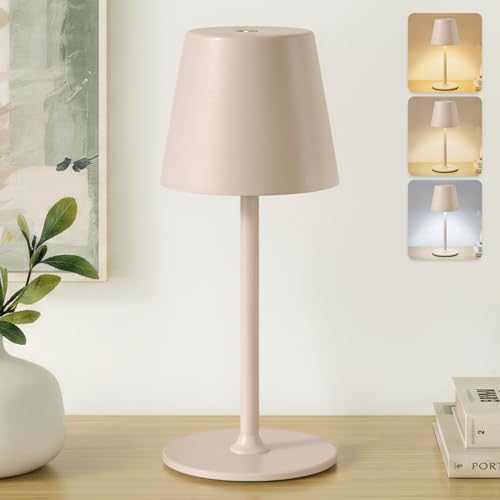 LuminexDesigns Lampe de Table LED Sans Fil Rechargeable, Tactile et Dimmable avec 3 Températures de Couleur et Mémoire, Mini Lampe de Chevet en Métal Lourd pour Chambre, Terrasse, Jardin et Camping