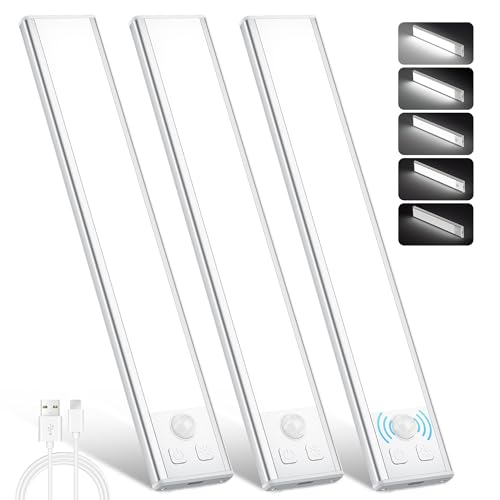 3 Couleurs Reglette Led Cuisine Super Lumineuses, Dimmable Lampe Detecteur de Mouvement interieur, USB-C Led Cuisine sous Meuble, Longue Durée-Installation Facile Lampe Sans Fil pour Armoire Escalier