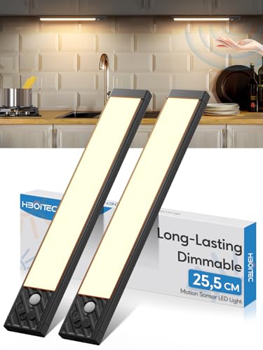 HIBOITEC Lampe de Placard, 25,5CM Dimmable Reglette LED Cuisine Sous Meuble, Lampe Led Detecteur de Mouvement, Eclairage Led Cuisine Sous Meuble Sans Fil Veilleuse Escalier Placard, Lumière Blanche