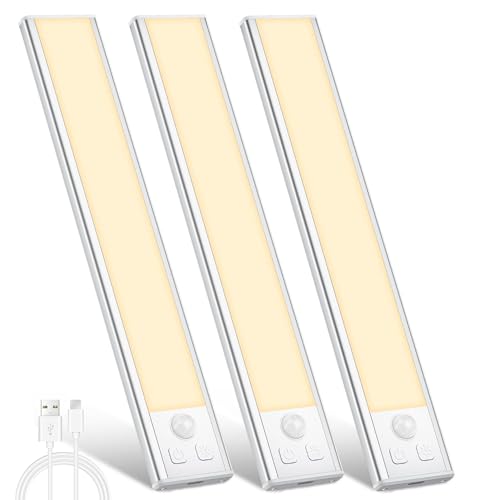 Tnight 3Pack Reglette Led Cuisine Sous Meuble,30cm USB Lampe LED Rechargeable Sans Fi Dimmable Cuisine Lampe Detecteur de Mouvement Interieur pour Télécommandé,Barre éclairage