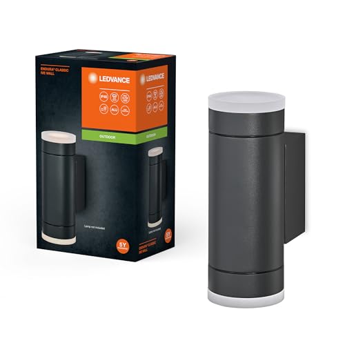 LEDVANCE Lampe d’extérieur ENDURA CLASSIC IVE W, applique murale, GU10, gris foncé, aluminium, installation facile, diffuseur en verre ou en PMMA, classe de protection IP65, éclairage indirect