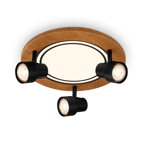 BRILONER - Plafonnier LED avec spots, lumière blanche chaude, plafonnier orientable, lampe LED en bois, lampe de salon 12W avec fonction mémoire, 300x155 mm (DxH)