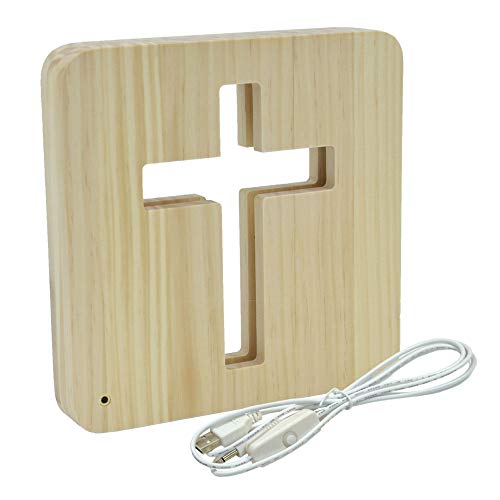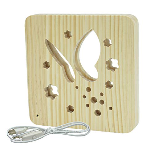 Kögler AmbiWood Lampe à LED en bois avec câble d'alimentation USB et interrupteur Blanc chaud 19 x 19 x 3 cm