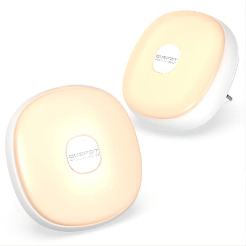 OUSFOT Veilleuse LED [Lot de 2], Lampe Nuit Veilleuse Enfant Murale Automatique avec Capteur de Lumière 1200mAh rechargeable 2500-3500K Warmgelb pour Chambre Bébé, Couloir, Escalier (blanche)