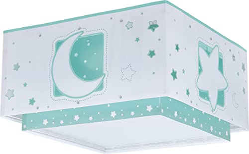 Dalber Plafonnier enfant Moonlight lune et étoiles Vert, Lustre chambre; Enfant, Lampe de Plafond enfant, 63236H, E27