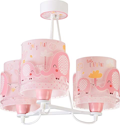 Dalber Lampe Suspension Enfant 3 Lumières, Little Elephant, L'éléphant; les animaux Rose, 61337S, E27