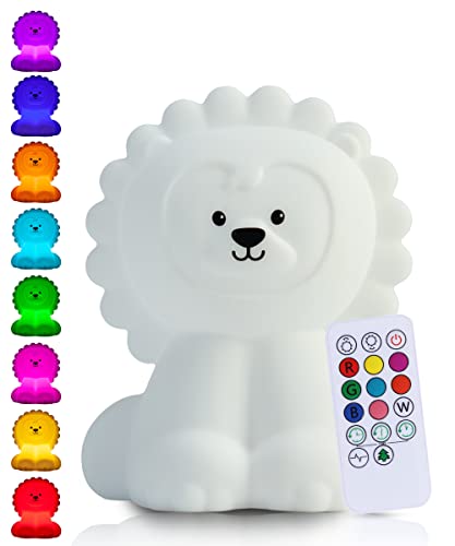 Kadoing® Veilleuse Lion (Grande) - avec Fonction de Tapotement et Télécommande - Lampe LED de Nuit Rechargeable - Cadeau de Naissance - Jouet - Chambre de Bébé - Lampe Enfant Premium