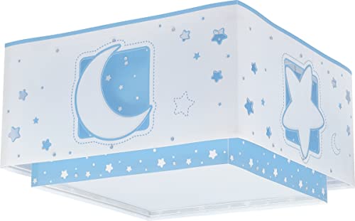 Dalber Plafonnier enfant Moonlight lune et étoiles Bleu, Lustre chambre; Enfant, Lampe de Plafond enfant, 63236T, E27