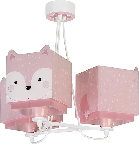 Dalber Lampe Suspension Enfant 3 Lumières Little Fox Renard animaux rose, 64587, E27