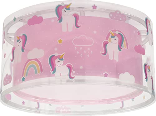 Dalber Plafonnier enfant Licornes Animaux Unicorns, Lustre chambre; Enfant, Lampe de Plafond enfant, 41596, E27, Rose