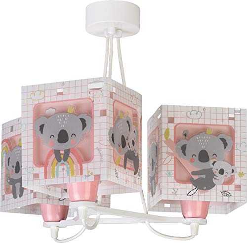 Dalber Lampe Suspension Enfant 3 Lumières Koala Animaux Rose, 63267S, E27