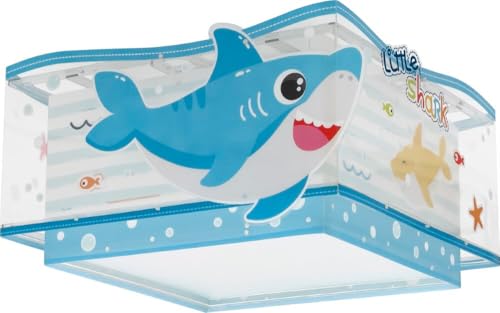 Dalber Plafonnier enfant Little Shark Requin animaux, Lustre chambre; Enfant, Lampe de Plafond enfant, Blue, 63476, E27