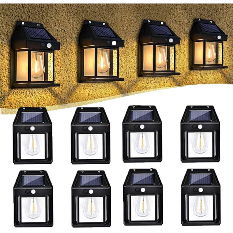 2 Pièces Applique Murale Solaire Vintage Extérieure, Lampe Solaire Exterieur avec Detecteur de Mouvement, Lumière Jardin étanche IP65, Puissante