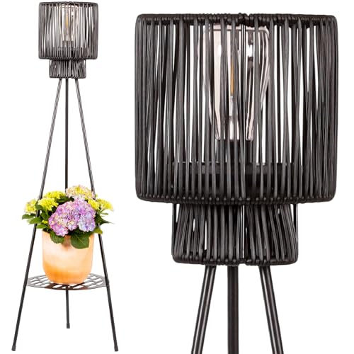 Gadgy Lampe Solaire LED Extérieure avec Support pour Fleurs | Lanterne Étanche en Rotin-look | Éclairage Durable à Trois Pieds pour Jardin, Balcon, Terrasse