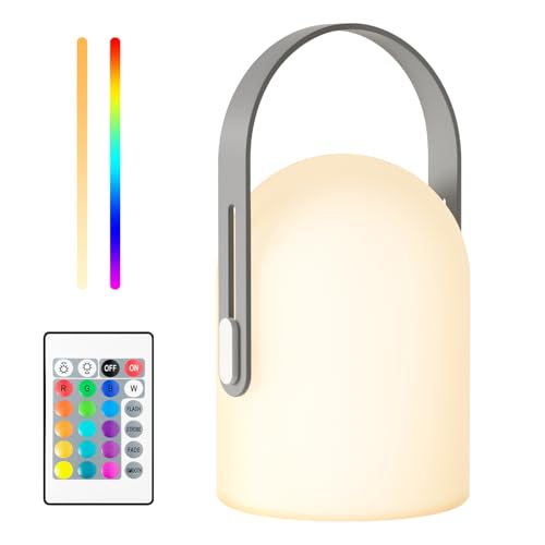 gabless Lampe de table à batterie LED, lampe LED extérieure rechargeable, lampe de table dimmable avec 16 couleurs (Gris)