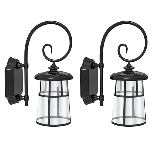 Outsunny Lot de 2 applique murale extérieure, lampe solaire extérieure, LED lumière, 6000K blanc chaud sans fil, applique murale solaire, décoration pour patio, jardin, balcon, cour, clôture, noir