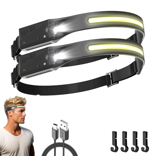 Arkenx Lampe Frontale, Arkenlite LED Lampe Frontale, Lampe Frontal LED Ultra Puissante 230° Rechargeable, avec 6 Modes d'Éclairage, pour Sport/l'Exploration/Camping/Réparation/Cyclisme (2 article)