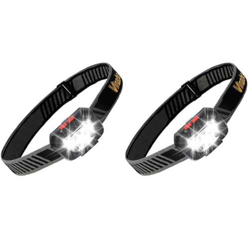 Vinabo Lampe Frontale LED 500LM, Ultra Puissante, 6 Modes, 30° Réglable, IPX4 Imperméable, Lampe Torche pour Camping, Pêche, Cyclisme, Course, Lecture, Fonctionne avec 3 Piles (Lot de 2)