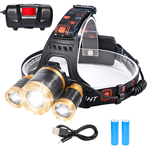 Lampe Frontale Rechargeable, Lampe Frontale à LED avec 6 Modes d'Éclairage, Torches Frontales Super Brillantes avec LEDs Blanches et Rouges, Phare Étanche pour le Camping, Randonnée et Lecture