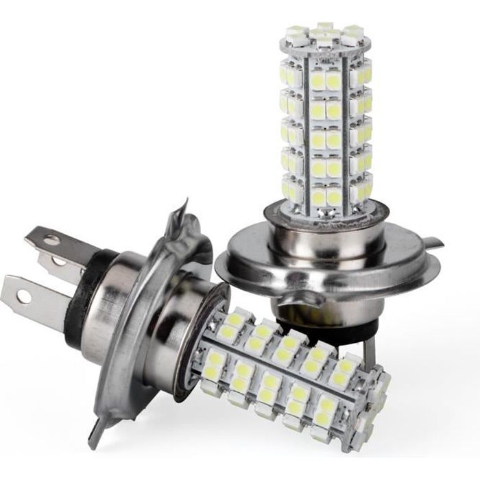 SODIAL(R) 2 PCS Voiture H4 68 SMD LED 6000K Xenon super blanc phares Ampoules Phare Lampe ou Feux de jour eclairage DRL 12V 3528