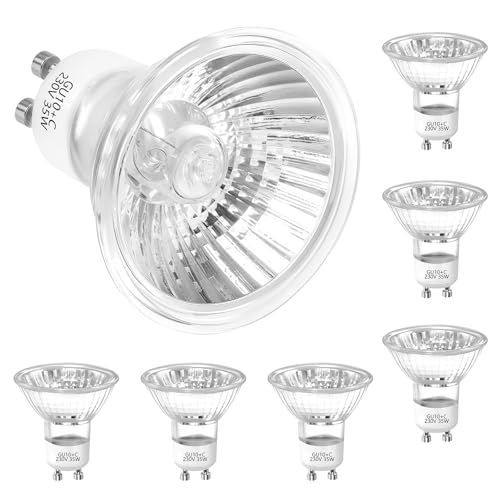 Ampoules Halogènes MR16 GU10 220V 35W Pack de 6, Haute Luminosité, Longue Durée, Économie d’Énergie, Lampe Halogène à Haute Température, Compatible avec Divers Scénarios, Couleurs Chaudes et Froides