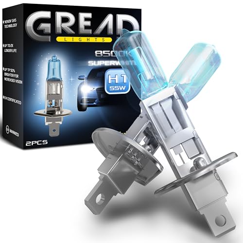 Gread - Lampe halogène H1 55W pour voitures, Apparence au xénon, 8500k super blanc, 2 pièces