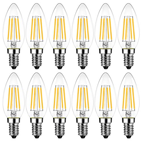 LVWIT 4W C35 E14 Ampoule Filament LED, Equivalent à lampe halogène 40W, 470 lumens, AC 220-240V -Blanc Chaud 2700K,Lot de 12
