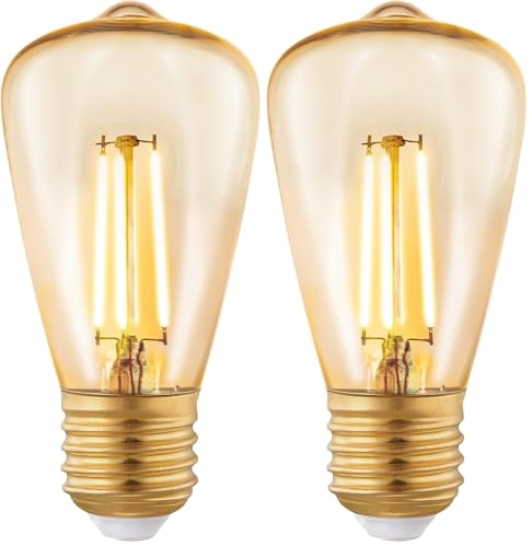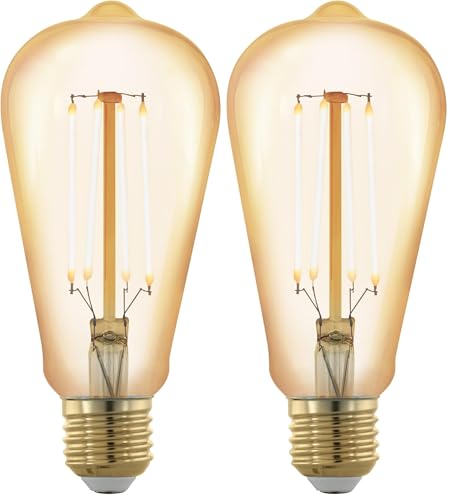 Eglo Ampoule filament LED E27 dimmable en étapes, forme de piston, lampe Edison à incandescence graduable, éclairage vintage et rétro, 4,5 watts, blanc chaud, ambré, 2200 Kelvin, ST64, Ø 6,4 cm