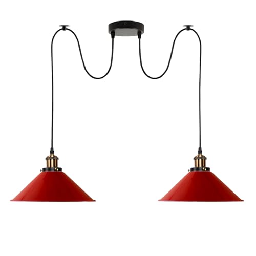 LEDSone Lampe à suspension industrielle double réglable à 2 têtes avec câble de 200 cm, douilles E27, abat-jour en métal pour cuisine, salle à manger, salon, bar, cafétéria (Rouge)