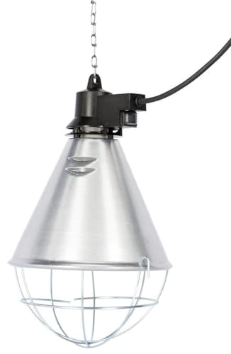 Kerbl Lampe chauffante Infrarouge, émetteur de Chaleur, Lampe chauffante, 5 m, Aluminium, avec Abat-Jour en Aluminium Ø 35 cm et Cage de Protection, y Compris chaîne de Fixation