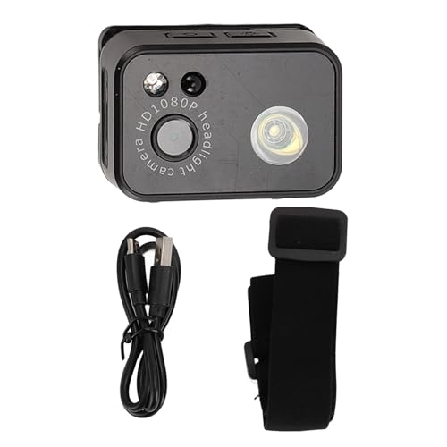 Goshyda Caméra d'action Montée sur la Tête, Caméscope Vidéo Portable avec Lampe Frontale LED 1080P, Prise en Charge de la Détection Intelligente de la Lumière Allumée et éteinte, Caméra