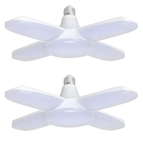 CHEOTIME Lampe de garage LED, ampoule E27 déformable 45 W 4500 lm avec panneaux pliables pour éclairage de plafond de sous-sol d'atelier, d'entrepôt (Blanc chaud 60W)