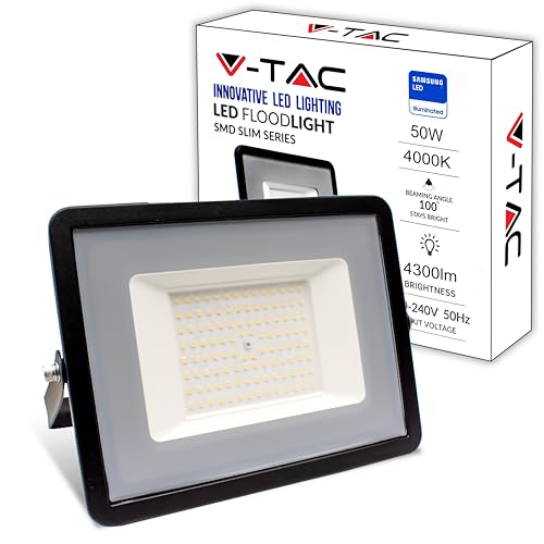 V-TAC Projecteur LED Extérieur 50W - [Haute Performance] - IP65 – 4270 Lumen – Lampe Étanche pour Maison, Jardin, Garage, Fabrique - Lumière Blanc Neutre 4000k