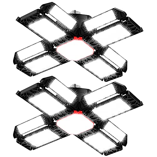 ZFQ Éclairage de Garage à LED, 60W E27 6500K 6000Lm Lampe de Garage LED Déformable avec 4 Panneaux Réglables, Plafonnier LED pour garage, Entrepôt, Atelier, Sous-sol, Gym, Cuisine (Pack de 2)