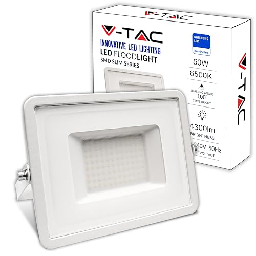 V-TAC Projecteur LED Extérieur 50W - [Haute Performance] Blanc - IP65 – 4270 Lumen – Lampe Étanche pour Maison, Jardin, Garage, Fabrique - Lumière Blanc Froid 6500k