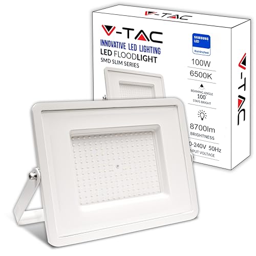V-TAC Projecteur LED Extérieur 100W - [Haute Performance] Blanc - IP65 – 8700 Lumen – Lampe Étanche pour Maison, Jardin, Garage, Fabrique - Lumière Blanc Froid 6500K