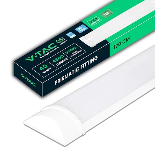 V-TAC Réglette LED Linéaire 120 cm - 40W - Chip Samsung - Haute Luminosité - Plafonnier Lampe Rectangulaire 4300 Lumen IP20 pour Plafond, Garage, Magasin - Tube Led - Lumière 3000K Blanc Chaud