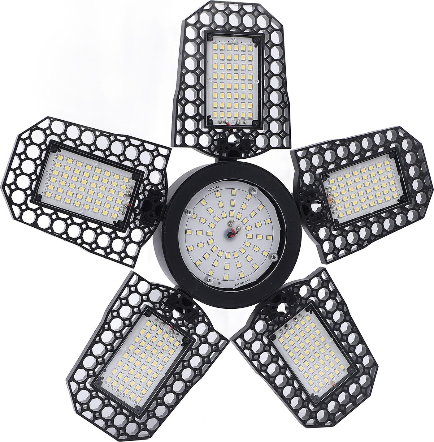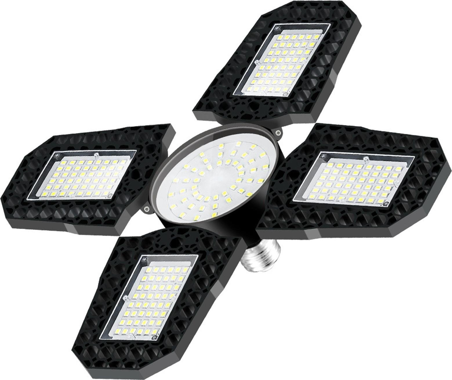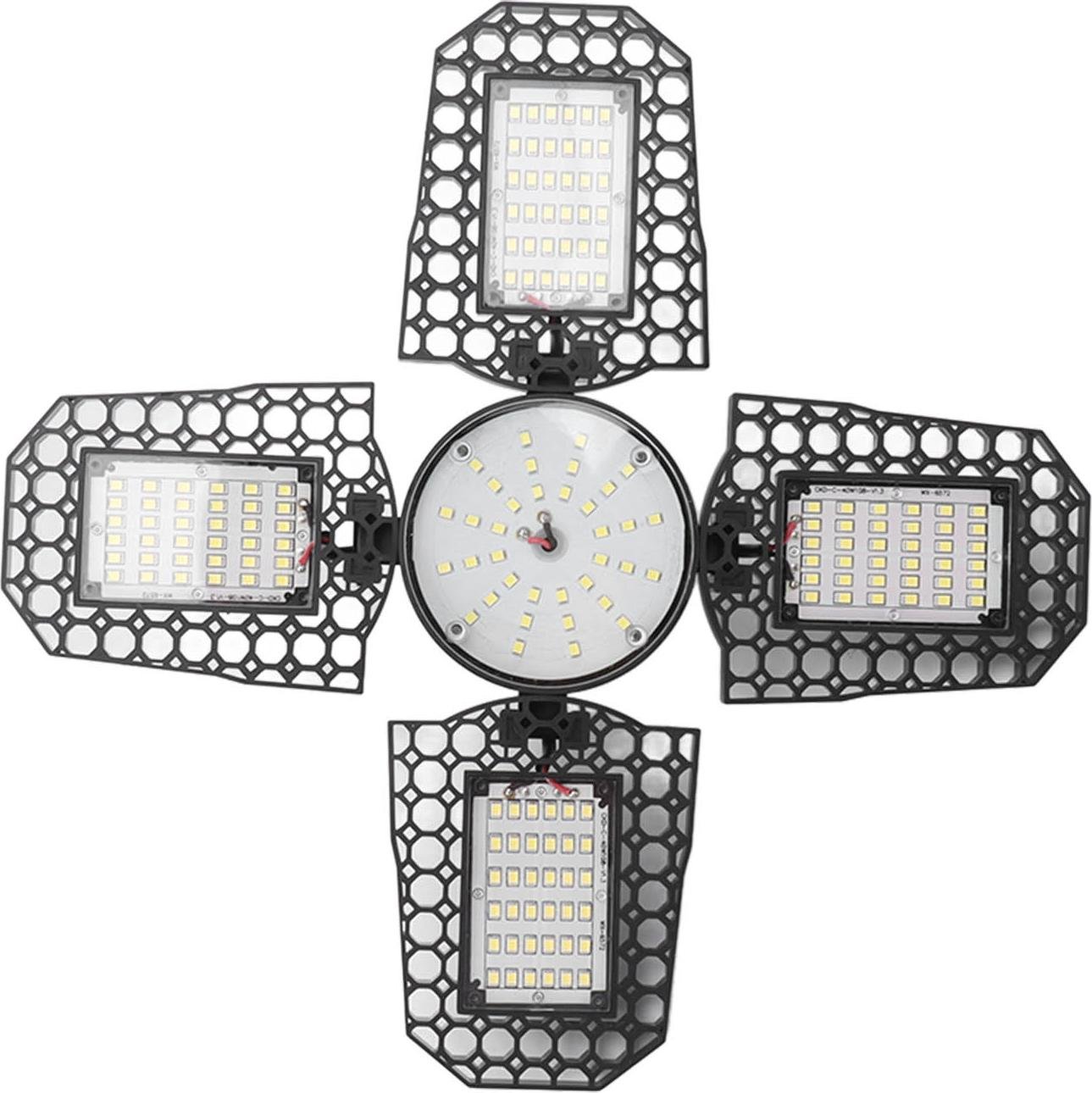 Lampe de garage LED pliable 4 feuilles 100W Haute luminosité Economie d'énergie Plafonnier E27 pour garage Atelier 85?265V