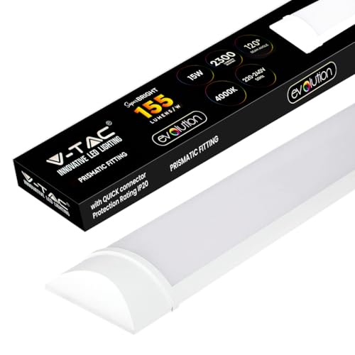 V-TAC Plafonnier LED Linéaire - 60 cm 15W - [SÉRIE EVOLUTION] - Tube LED - Lampe Rectangulaire IP20 pour Mur, Garage, Entrepôt, Bureau - Couleur de Lumière 4000k Blanc Naturel