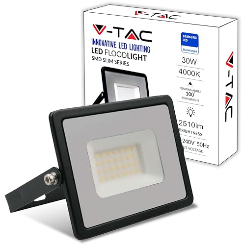 V-TAC Projecteur LED Extérieur 30W - [Haute Performance] - IP65 – 2510 Lumen – Lampe Étanche pour Maison, Jardin, Garage, Fabrique - Lumière Blanc Neutre 4000K