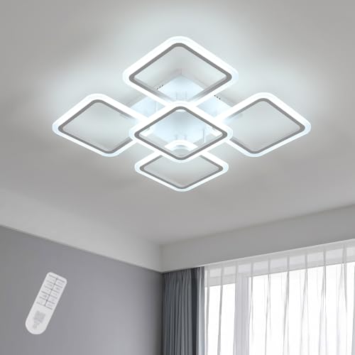 Comely Plafonnier LED Dimmable, Blanc 5 Carré 57W 6400LM Lampe de Plafond LED avec Télécommande 3000K-6500K, Luminaire Plafonnier Moderne pour Salon, Chambre, Salle à Manger
