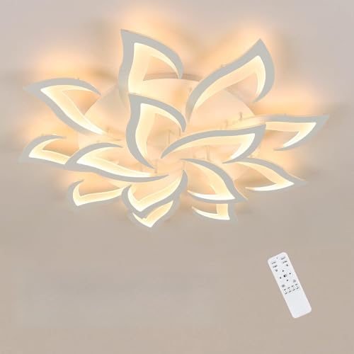 Goeco Plafonnier LED Dimmable, 84W Ø 96 CM Luminaire Plafonnier en Forme de Fleur avec 14 Lampes 3000K-6000K avec Télécommande Lampe de Plafond LED Moderne en Acrylique pour Salon, Blanc