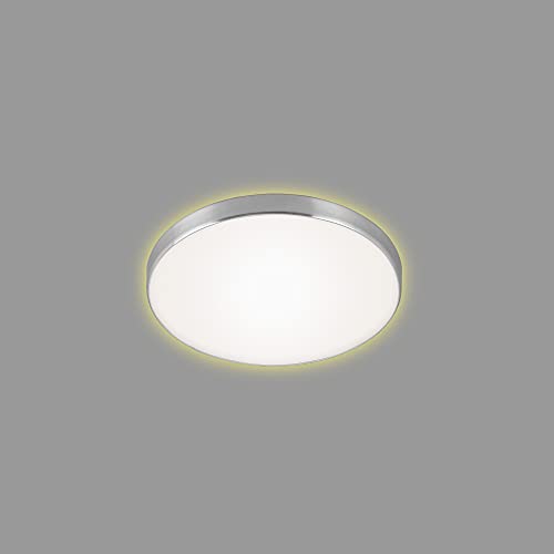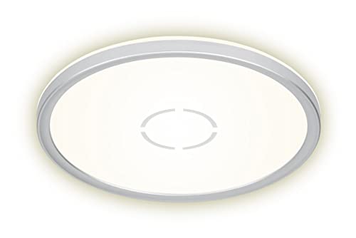 BRILONER 3391-014 Plafonnier LED, Lampe de Plafond avec Effet de rétroéclairage, 18 W, 2.400 Lumen, 4.000 Kelvin, Rond, Blanc argenté, Ø 29,3cm