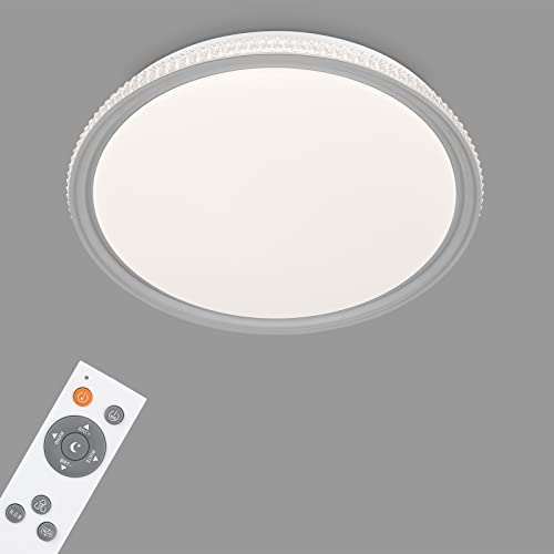 BRILONER - Lampe de plafond LED à changement de couleur, plafonnier LED avec télécommande, graduable, contrôle de la température de couleur, fonction mémoire, 500 mm, gris transparent