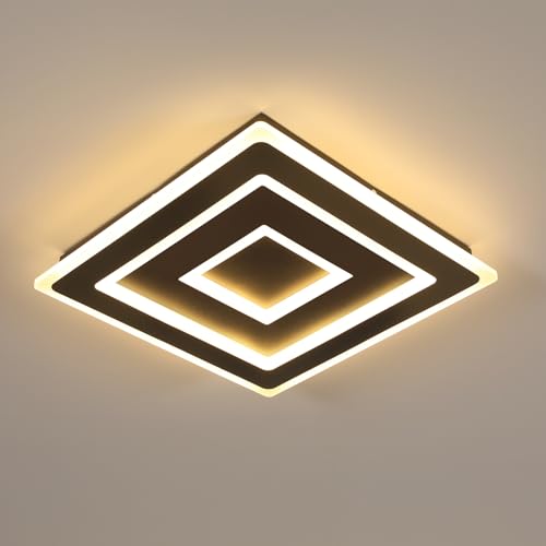 Comely Plafonnier LED Noir Carré Moderne for Salon, 52W 5850LM 40cm Lampe de Plafond LED, Acrylique Luminaire Plafonnier Intérieur pour Chambre à Coucher, Salon, Lumière Chaude 3000K