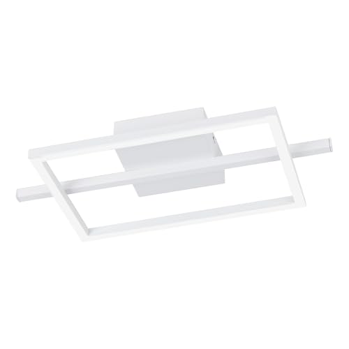 Eglo Lampe de plafond LED Amandolo, plafonnier carré à intensité variable avec télécommande, luminaire géométrique en métal blanc, blanc chaud froid, rétro-éclairage RGB