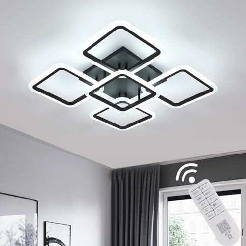 Comely Plafonnier LED Dimmable, 5 Carré 57W 6400LM Lampe de Plafond LED avec Télécommande 3000K-6500K, Luminaire Plafonnier Moderne pour Salon, Chambre, Salle à Manger