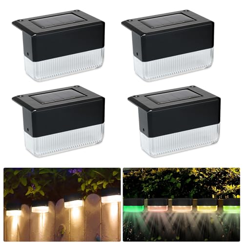 EBUYFIRE Lumière Solaire LED Extérieur avec 3 LED, Lampe Solaire Jardin IP65, 2 Modes (Blanc Chaud/Changement de Couleur) pour Balcon, Terrasse, Escaliers, Clôtures(4)