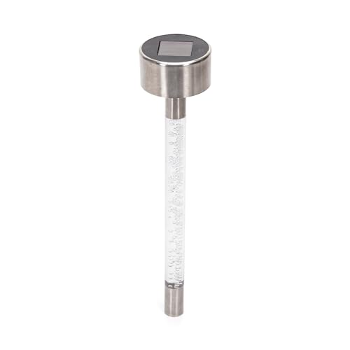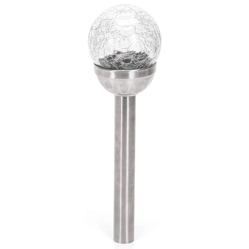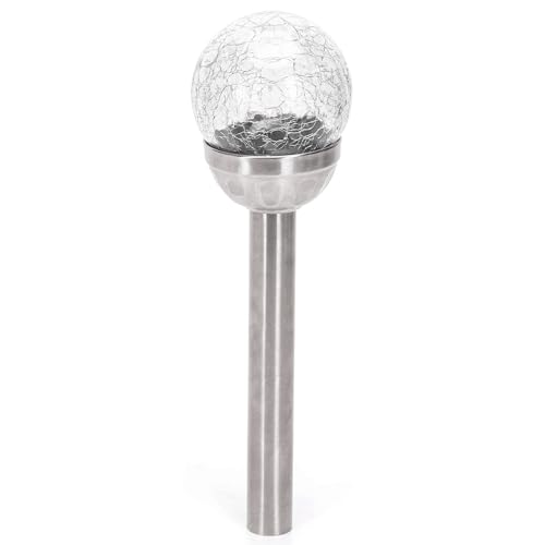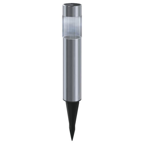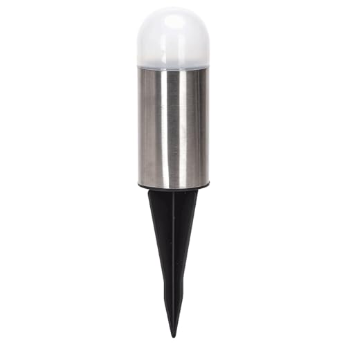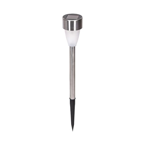 Glowster Lampe solaire LED d'ambiance 6500 K, piquet rond en acier inoxydable, idéal pour éclairer les jardins et pelouses.