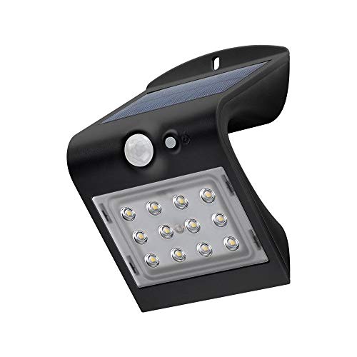 REV LUMUS 130 Applique murale solaire avec détecteur de mouvement, lampe murale LED, lampe solaire de jardin, 150 lm, 3000 K, 2 W, IP65, noir